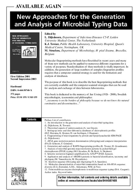 Read Online New Approaches for the Generation and Analysis of Microbial Typing Data Library Binding BookBoon